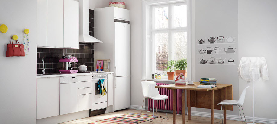 Το λευκό δίνει την εντύπωση της καθαριότητας και ίσως αυτός είναι ο βασικός λόγος για να διαλέξετε λευκά έπιπλα ή λευκούς τοίχους για την κουζίνα ή την τραπεζαρία. Το λευκό αντανακλά όλο το φως έτσι ώστε να κάνει τον χώρο να φαίνεται μεγαλύτερος...