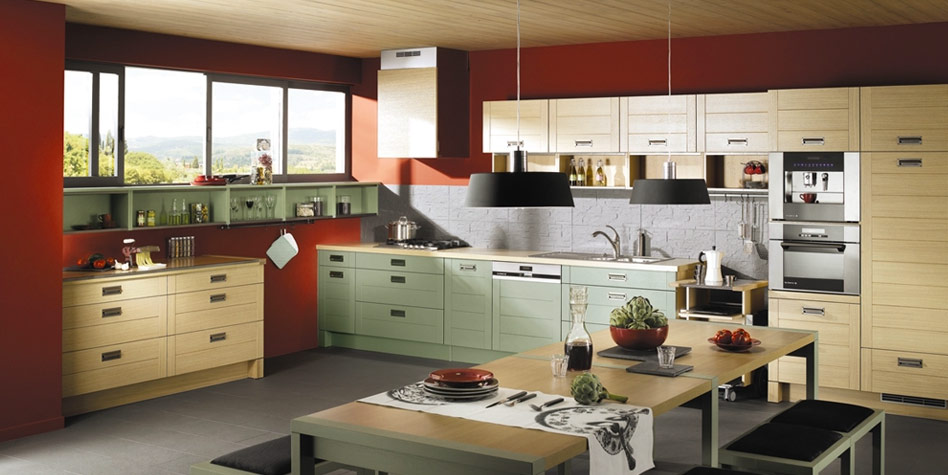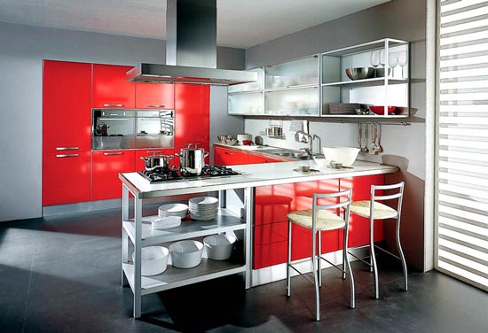 Το κόκκινο είναι μια καλή επιλογή για κουζίνες και τραπεζαρίες, αν και οι αποχρώσεις του κόκκινου θα πρέπει να εφαρμόζονται με ιδιαίτερη προσοχή γιατί μπορεί να κάνει κλειστοφοβικούς τους μικρούς χώρους. Ωστόσο, ορισμένες αποχρώσεις όπως το πορτοκαλί-κόκκινο ή καφέ-κόκκινο είναι πιο υποτονικές και οικείες.