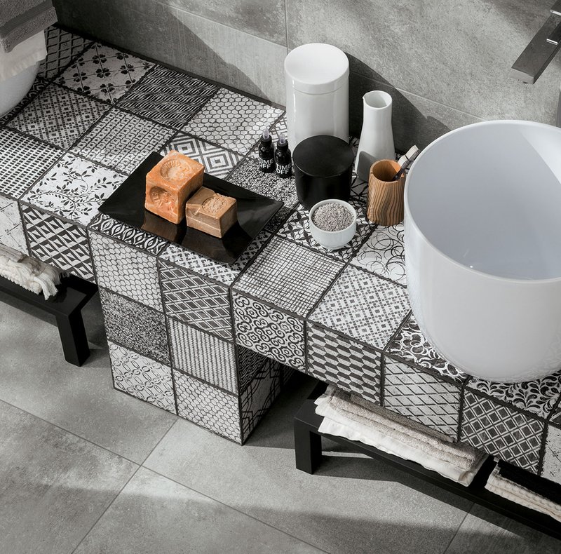 Ο συνδυασμός του γρανίτη με πλακάκι vintage mix σε γκρι αποχρώσεις δίνει την ζεστασιά που χρειάζεται το μπάνιο σας για μια ποιο οικεία αίσθηση.