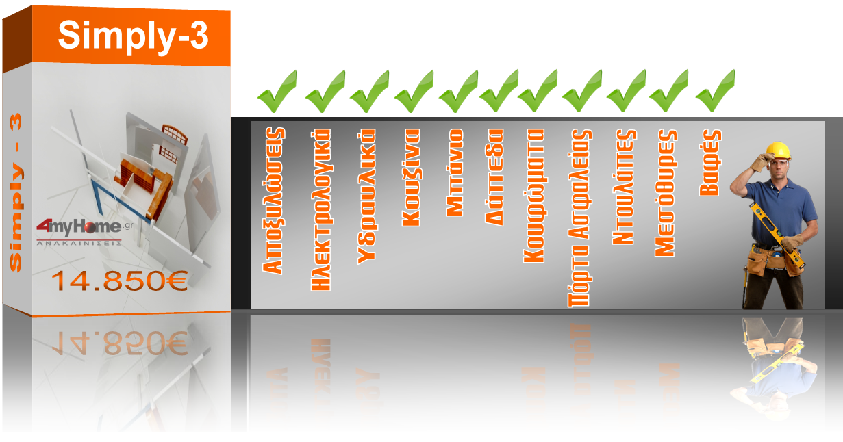Πλήρες Οικονομικό Πακέτο Ανακαίνισης Κατοικίας ΠΕΡΙΛΑΜΒΑΝΕΙ: 1. Σχεδιασμό 3D σχεδιασμός της τελικής μορφής των χώρων.