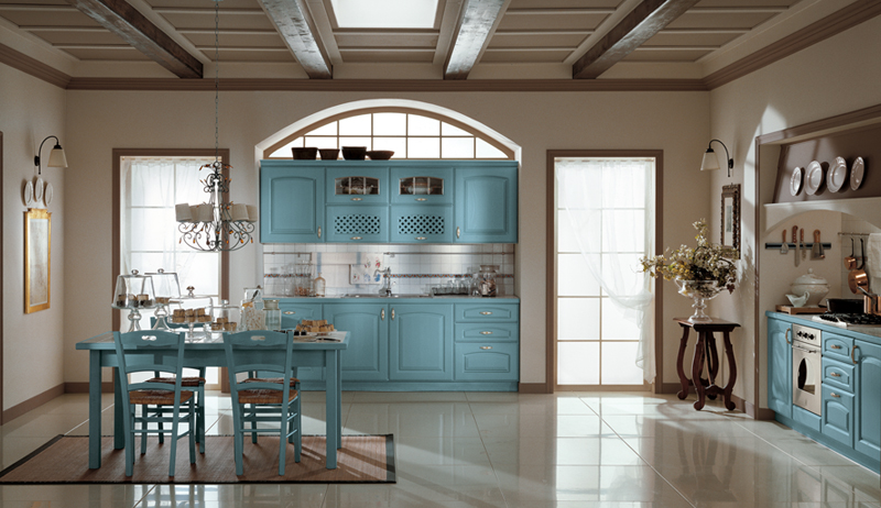 Το μπλε φαίνεται να λειτουργεί καλά και σε κουζίνες και τραπεζαρίες.