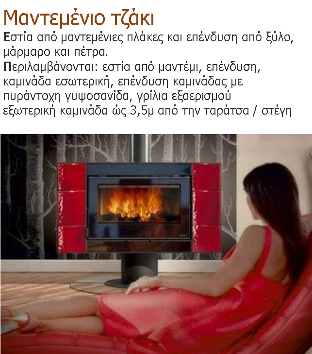 Σημείωση:: Η δωρεάν προσφορά μας για τζάκι παραδοσιακό η μαντεμένιο, ισχύει για γενική ανακαίνιση διαμερίσματος η επαγγελματικού χώρου, υπό την προϋπόθεση δυνατότητας εξόδου της καμινάδας.